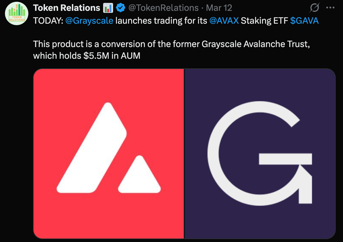 Grayscale opened up trading for $GAYVAX $GAVA, its AVAX ETF product this week! The accounts swapped logo coloring with the AVAX account taking on the dreary, muted colors of the Grayscale logo while the Grayscale account took on the vibrant red that we know and love. Very cute!