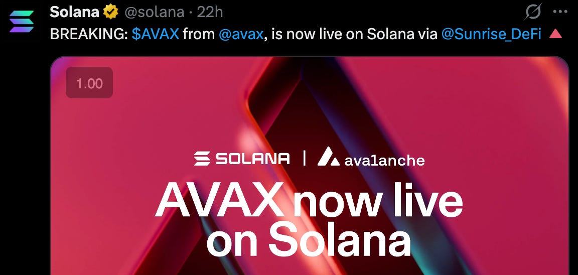 And last but not least, we can finally buy memecoins with our AVAX—we just need to bridge to Solana to do it.