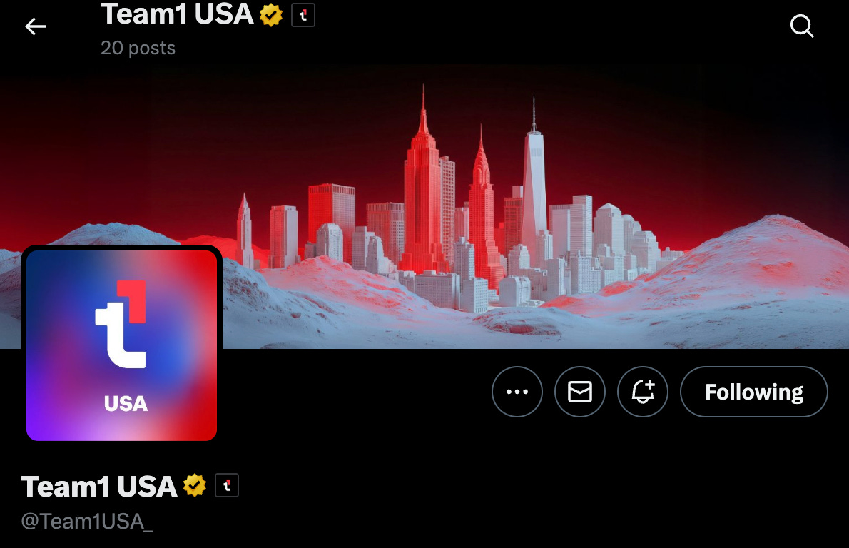 Team1 launched a fancy new Team1USA_ branch! Gold checkmark! Honestly it was news to me that there was no USA branch of Team1. Seems like the largest AVAX market so it makes sense to have one! Now we do!