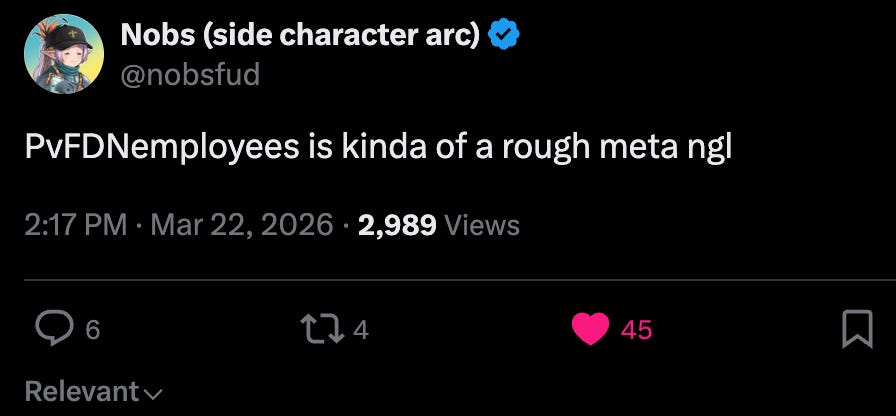 Hopefully it’s water under the bridge now, and we will have no more PvFDNEmploids moving forward. If you’re reading this, Matias, just keep your insider trading small! If it means there will be tokens to trade again, we’re cool with it!