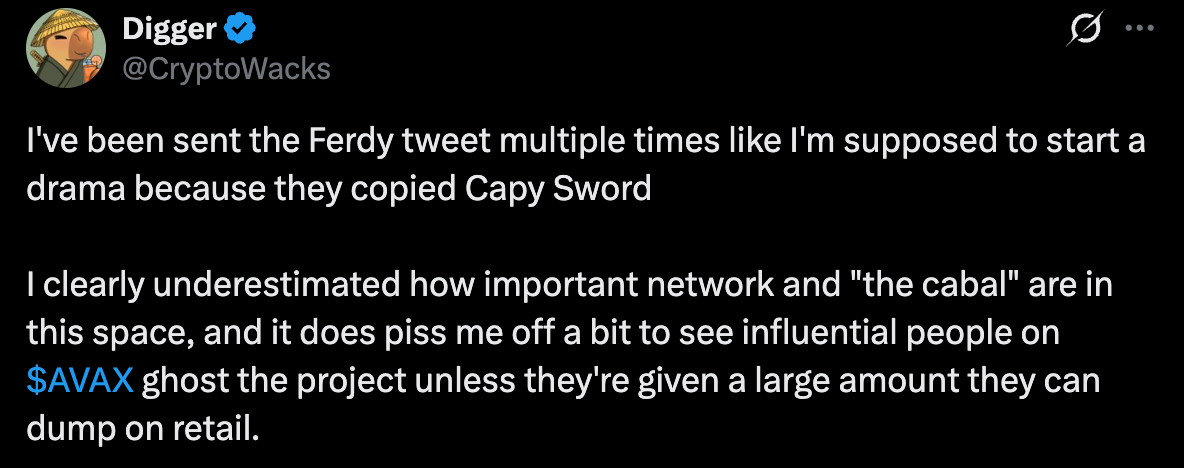 His post was long, but the relevant part is that he, like so many others, blames the “cabal.” This line of reasoning is frustrating on a few fronts, so let’s speedrun why this makes me angry:
